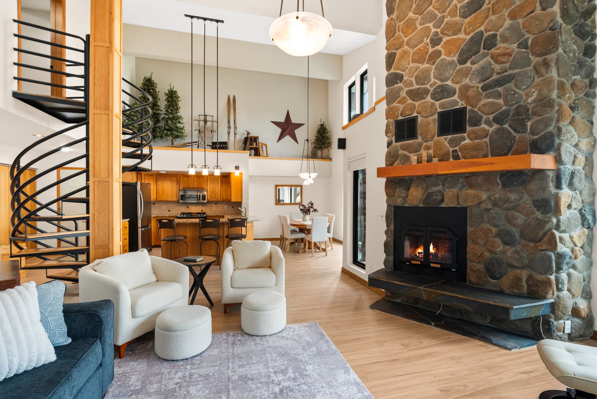 Looking for the ultimate family-friendly ski retreat? This beautifully updated 4-bedroom, 4-bathroom condo offers true ski-in, ski-out convenience from one of the best locations on Schweitzer Mountain—just steps above the Village. The interior features new flooring throughout, updated furnishings, and a bright, turn-key layout. Enjoy vaulted ceilings, floor-to-ceiling windows, expansive mountain and lake views, and a cozy fireplace. Three bedrooms are ensuite, and the large loft-style bunk room adds space for guests. The oversized 2-car garage includes gear storage and a ski tuning area. Located in one of the Northwest's premier summer and winter destinations, with easy access to Schweitzer's terrain, Sandpoint's charm, and the beauty of Lake Pend Oreille, this home is your base for four-season adventure in North Idaho.